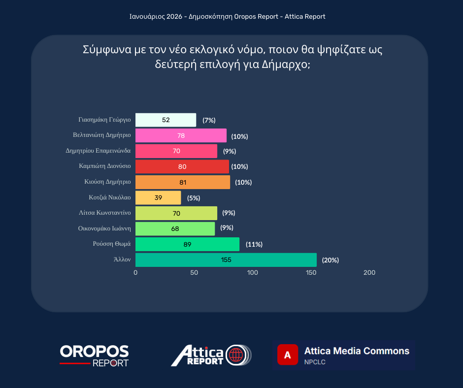 Η πλέον αποκαλυπτική μέτρηση της έρευνας αφορά τη δεύτερη επιλογή των δημοτών. Εκεί αποτυπώνεται η πραγματική δυναμική των υποψηφίων να «συναντηθούν» με ευρύτερα ακροατήρια: